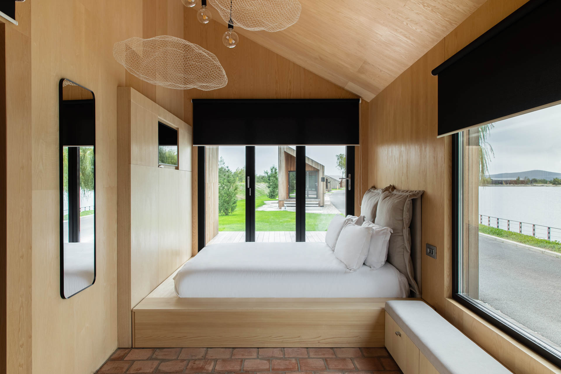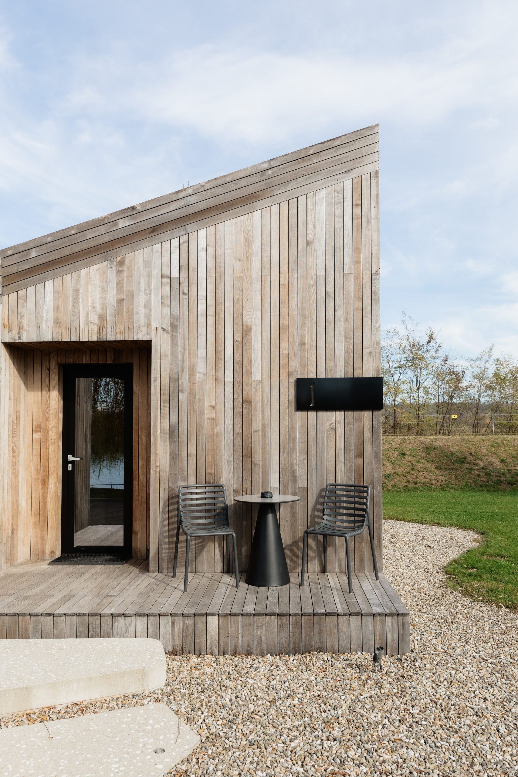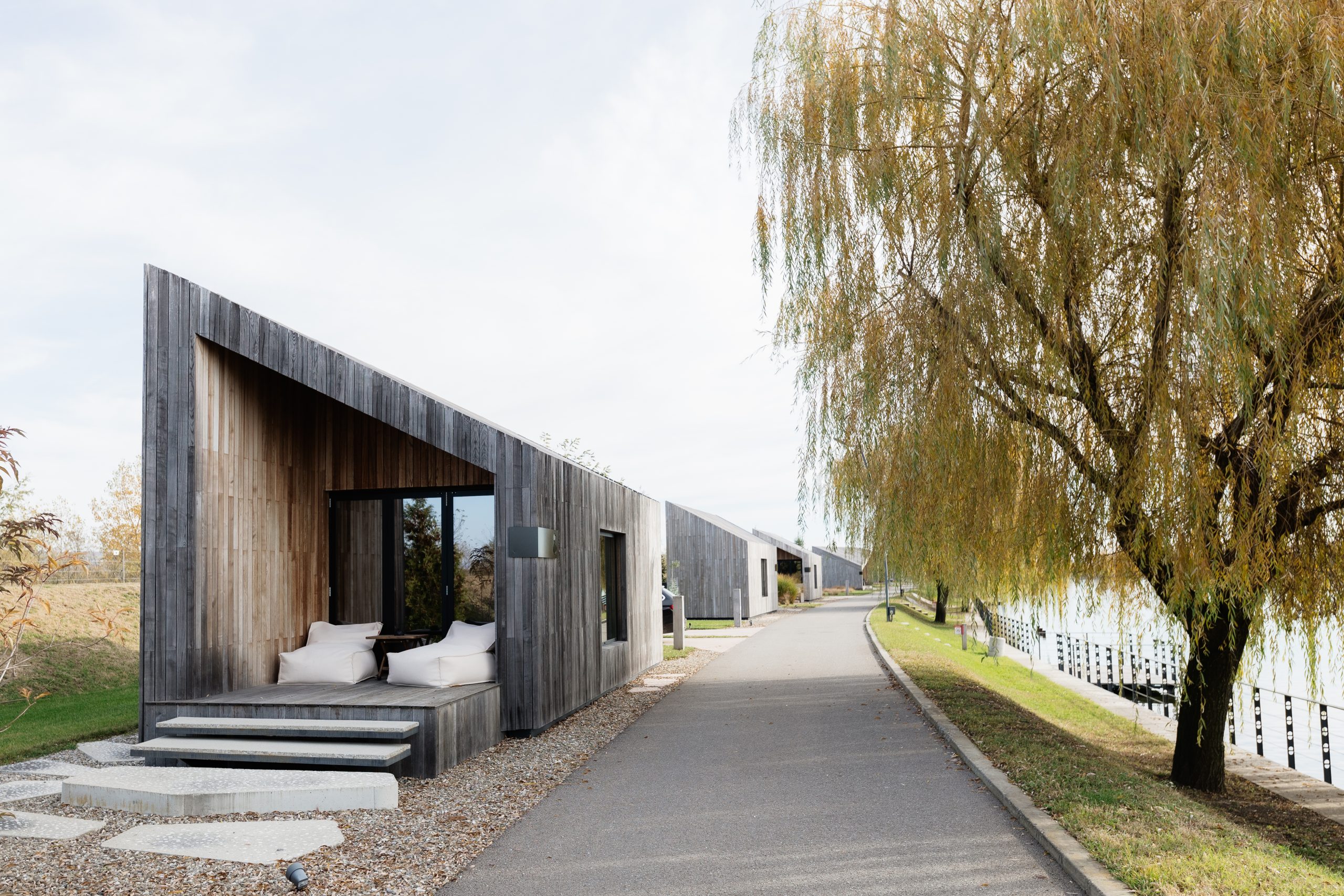 Spațiile vitrate deschid privirea către lac și peisajul din jur, creând o legătură firească între interior și natură. Dimineața te întâmpină lumina blândă și liniștea apei, iar seara, căsuța devine locul unei retrageri tihnite, în care te poți odihni pe deplin.