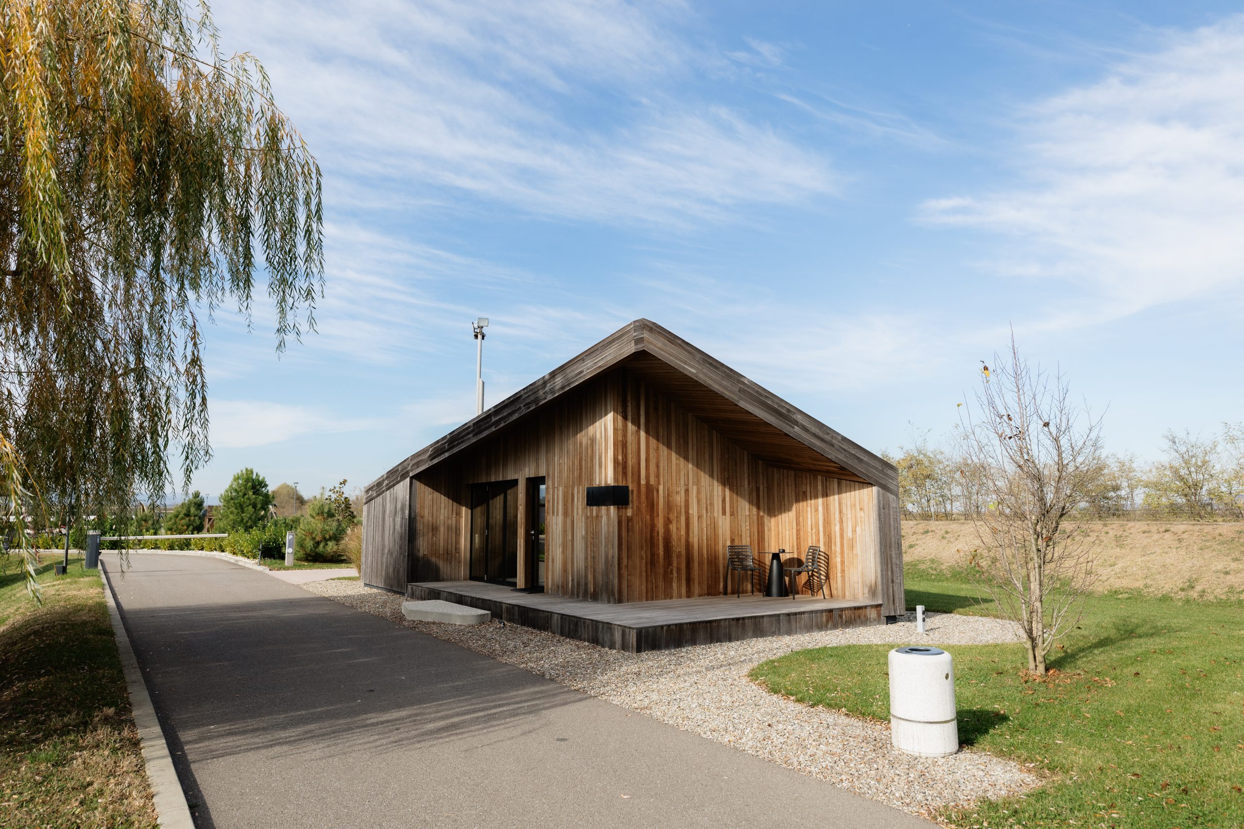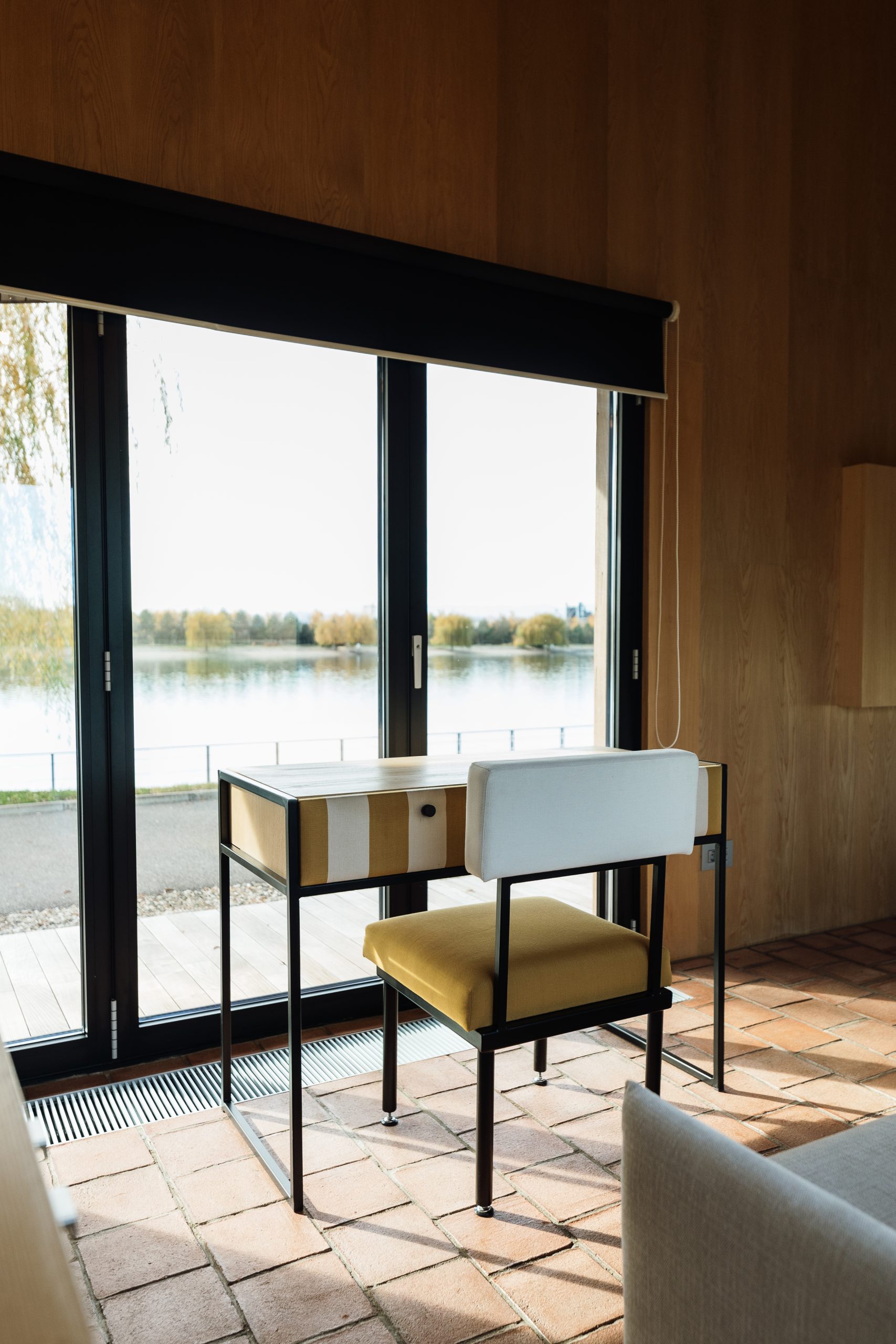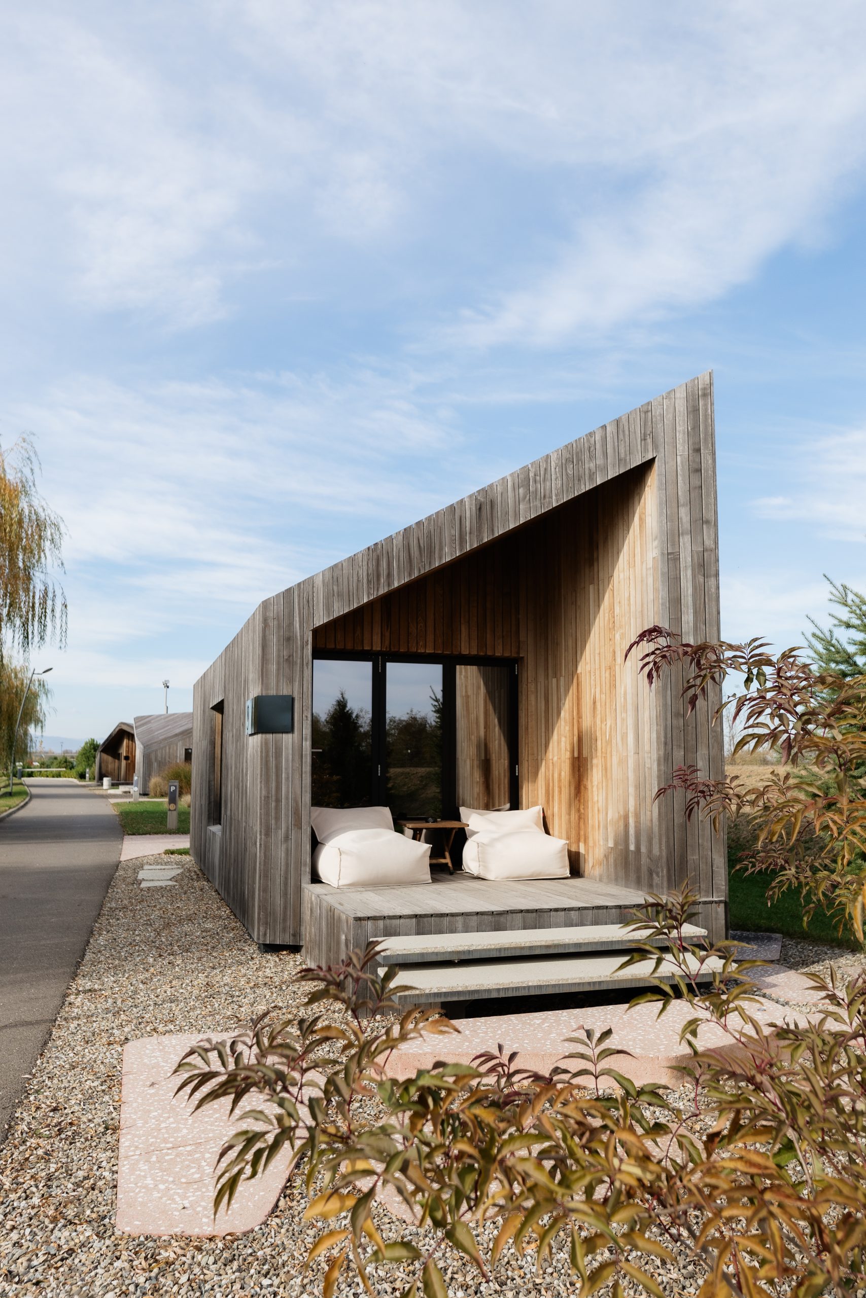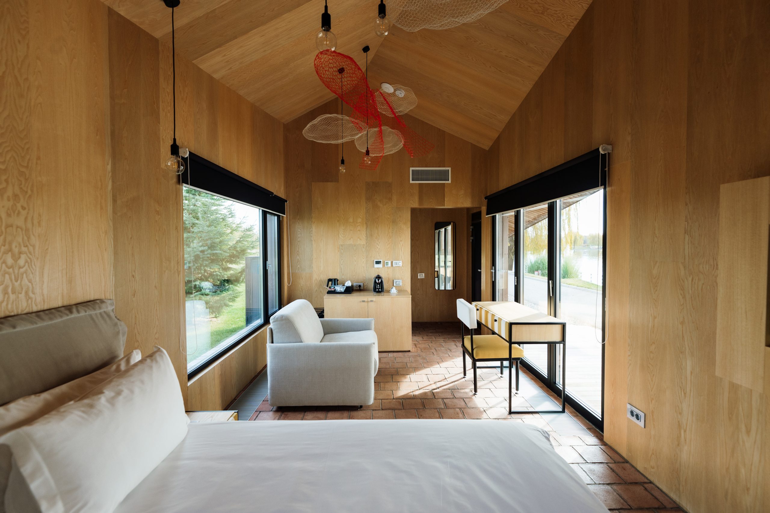 Spațiile vitrate deschid privirea către lac și peisajul din jur, creând o legătură firească între interior și natură. Dimineața te întâmpină lumina blândă și liniștea apei, iar seara, căsuța devine locul unei retrageri tihnite, în care te poți odihni pe deplin.